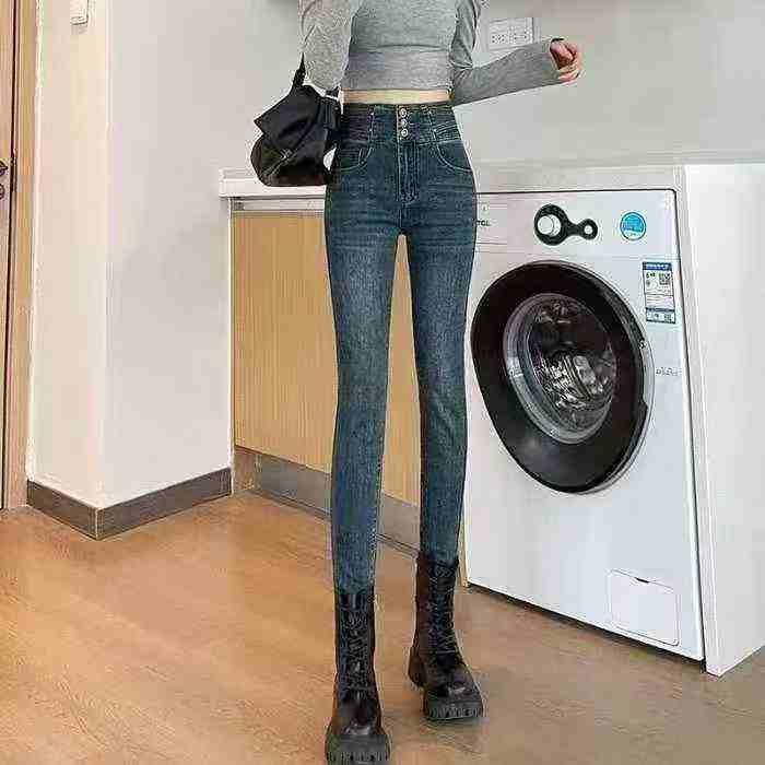 高弹力加绒牛仔裤小脚裤子显高铅笔裤子,独立包装带吊...