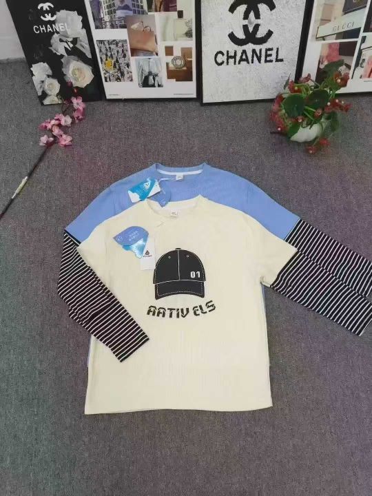 品牌童装2025新款中大童假两件上衣 数量2000件左右 尺码110--160 螺纹棉面料 整款两个色 独立包装带吊牌 货品整洁质佳!