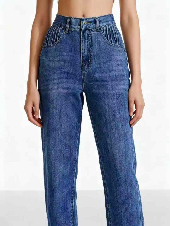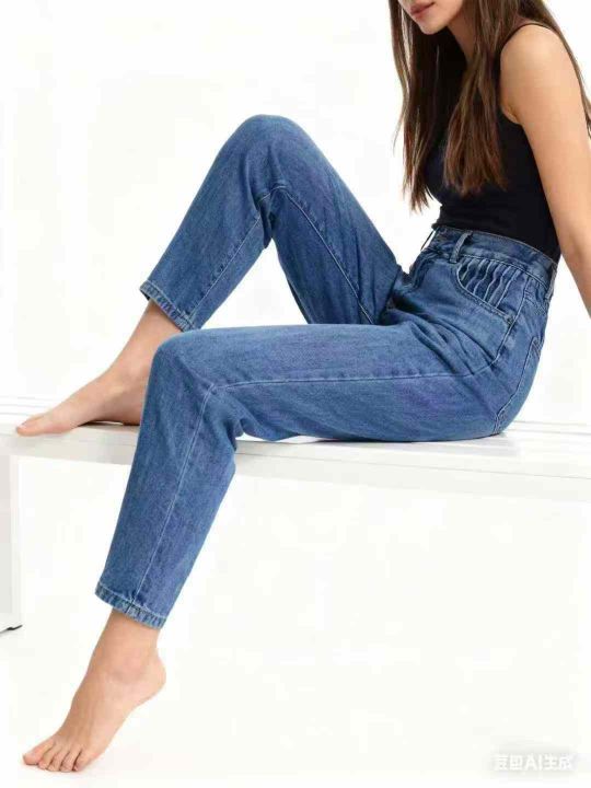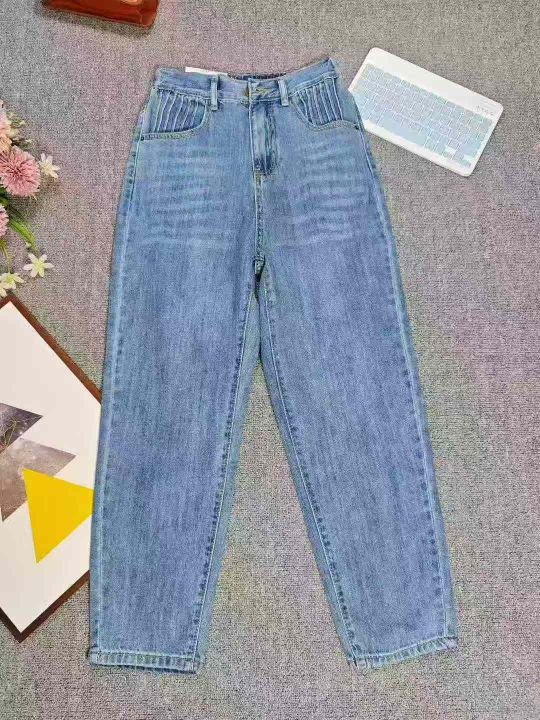 天猫下架洗水棉网红爆款松紧腰哈伦牛仔老爹裤,独立包...