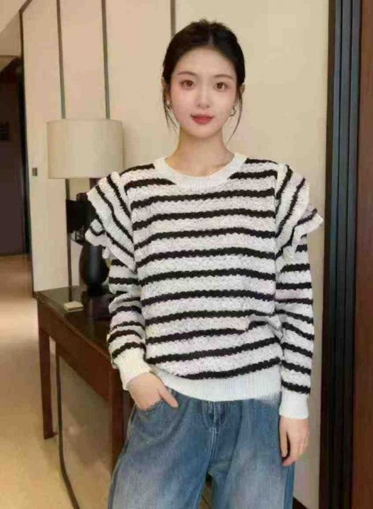 秋冬新款宽松慵懒风撞色条纹小香风套头糯米毛衣,独立...
