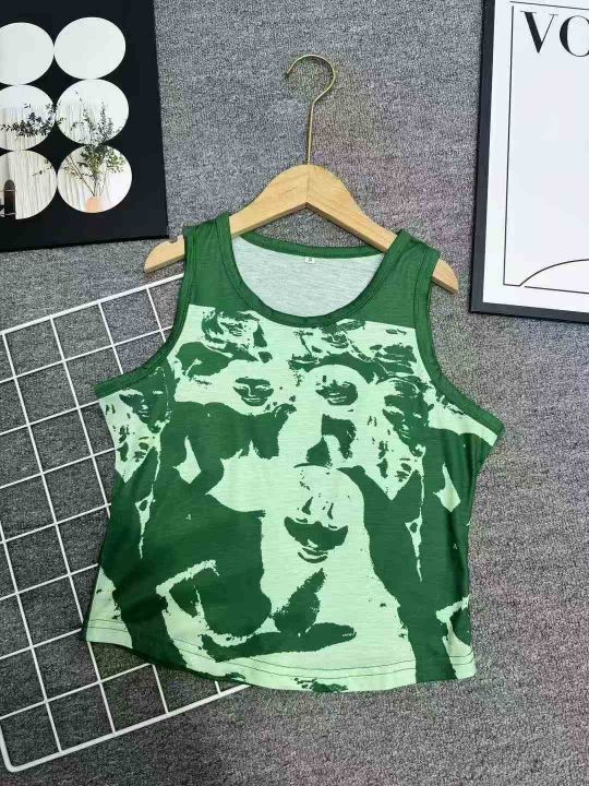 chic辣妹上衣 圆领修身短款复古撞色T恤 Y2K千禧风无袖印花背心夏,独立包装,码数XL-5XL,数量499件,全清3.8元,分货➕0.5。 货号:1323