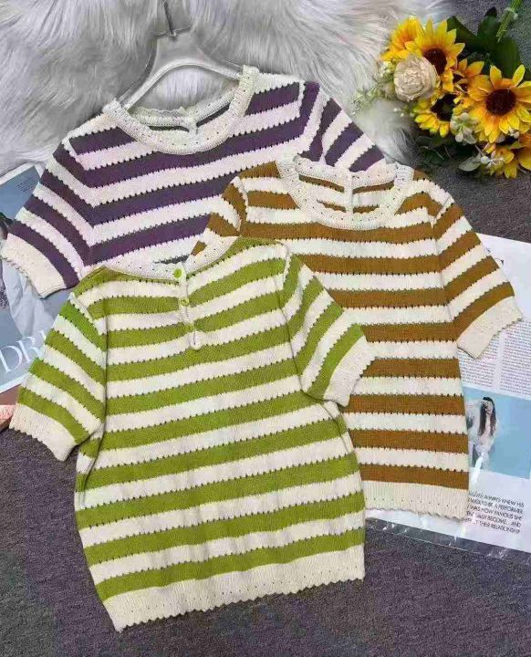 夏季新款港味风绝美撞色条纹圆领宽松正肩显瘦冰丝针织短袖,独立包装,均码面料柔软舒适,540件,全清5.9元超低价秒杀!分货加一!。 货号:24862