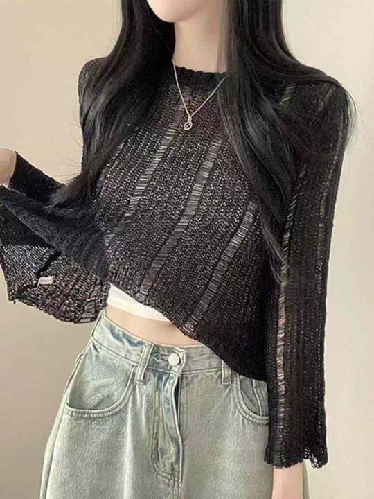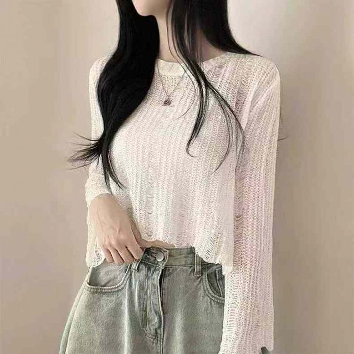 新款镂空上衣配吊带的小外搭韩版纯色宽松设计感长袖针...