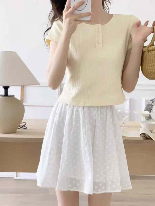 夏季新款女装防走光高腰百搭A字网纱蕾丝半身蓬蓬裙,...