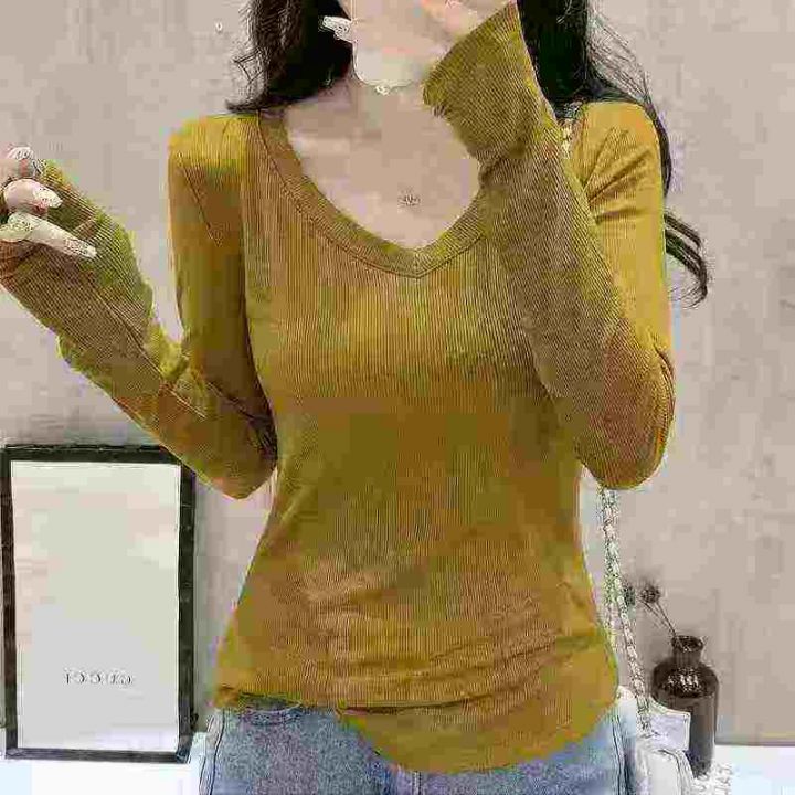 [月亮]:5.9清800件[月亮]:简约内搭外穿高弹V领长袖T...