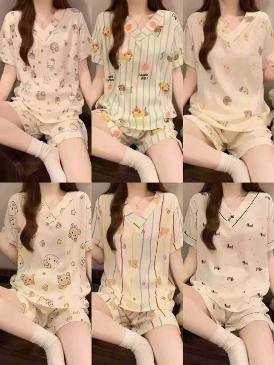 全清12.8元,分货13.8元,m到xxl码数,有圆领有V领(多花型颜色)独立包装,货品干净~睡衣女夏季新款云朵棉短袖短裤甜美可爱女士家居服套装