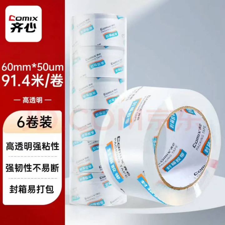 齐心(COMIX)高品质高透明封箱胶带打包快递专用宽胶带 60mm*100y*50um(91.4m/卷) 6卷/筒 办公用品 EP30325