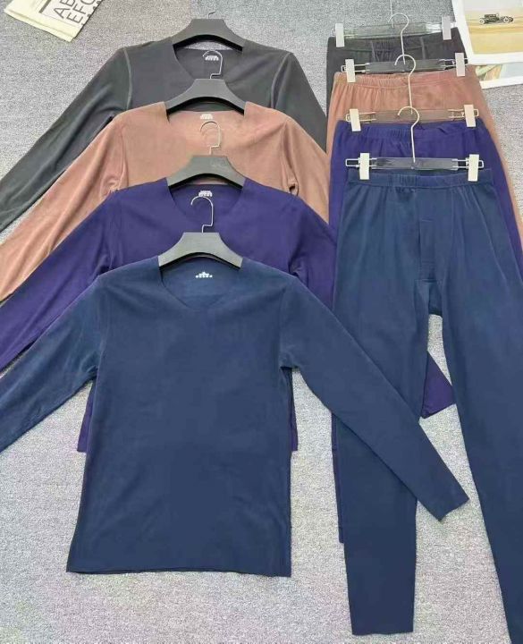 ☕️秋冬套装️男装德绒保暖套装26000套全清9.9 元,200套起分货10.9元,码数M到5XL高弹力,精品独立包装,有圆领/V领混合,混搭出货,双面德绒无痕内衣男士保暖套装双面绒防寒保暖长袖t恤秋衣秋裤套装