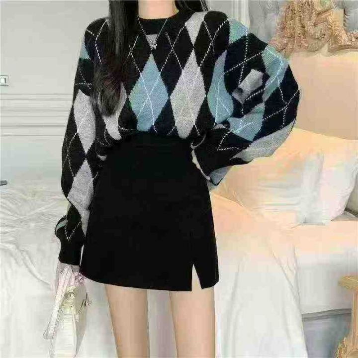 捡漏款,早秋新款靓妹短款宽松撞色黑白条纹针织长袖小衫,有垫肩,均码面料...