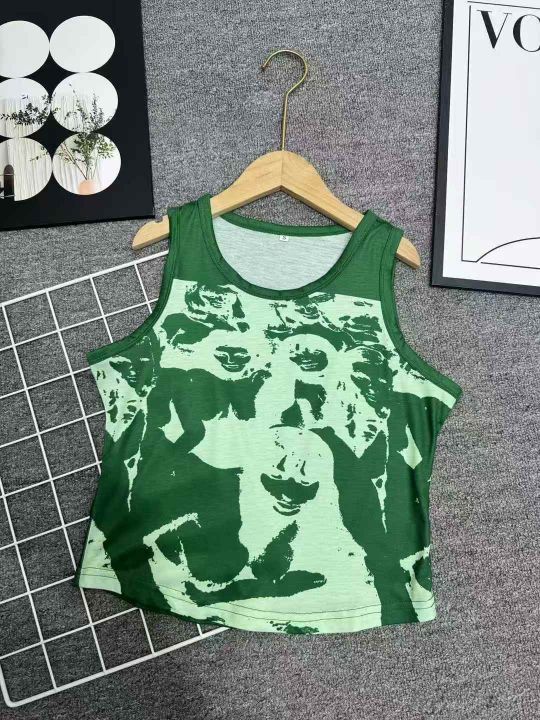 chic辣妹上衣 圆领修身短款复古撞色T恤 Y2K千禧风无袖印花背心夏,独立包装,码数XL-5XL,数量499件,全清3.8元,分货➕0.5