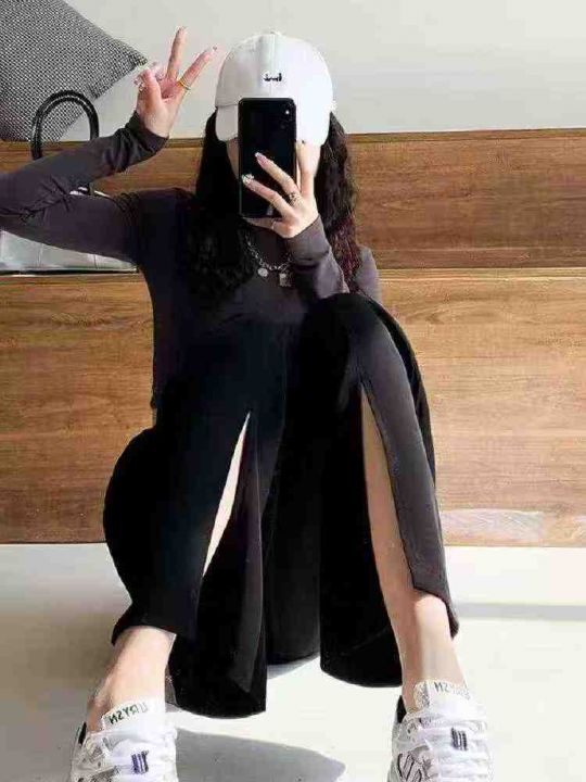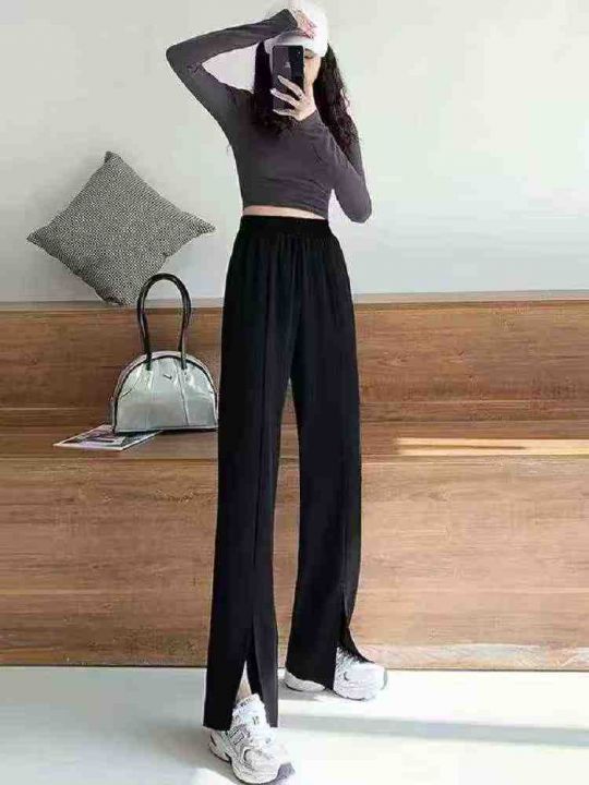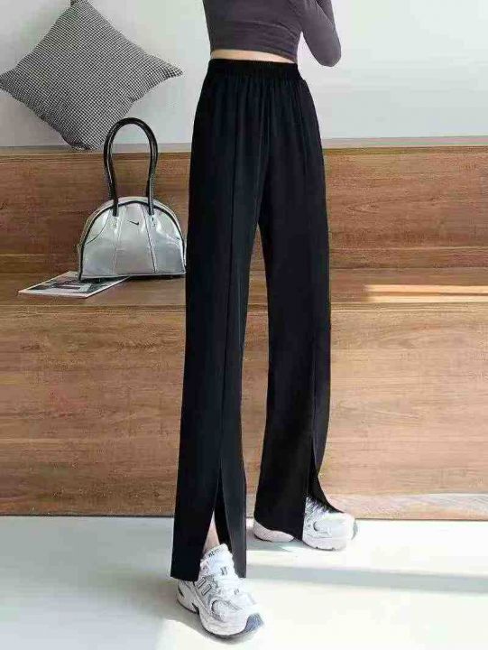 春秋高腰垂感显瘦阔腿松紧腰前开叉西装裤 独立包装 码...