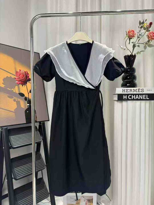 2025夏季新款时尚女装法式赫本风荷叶边V领减龄显瘦中长款连衣裙 独立包装 码数1-5码 数量225件 全清7.5