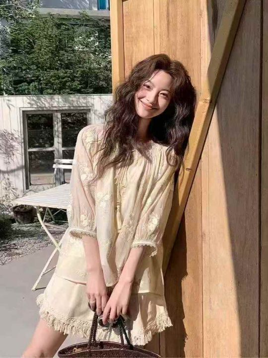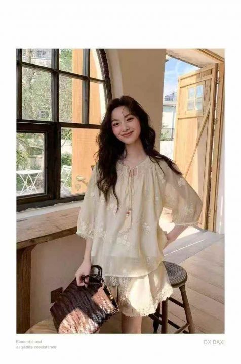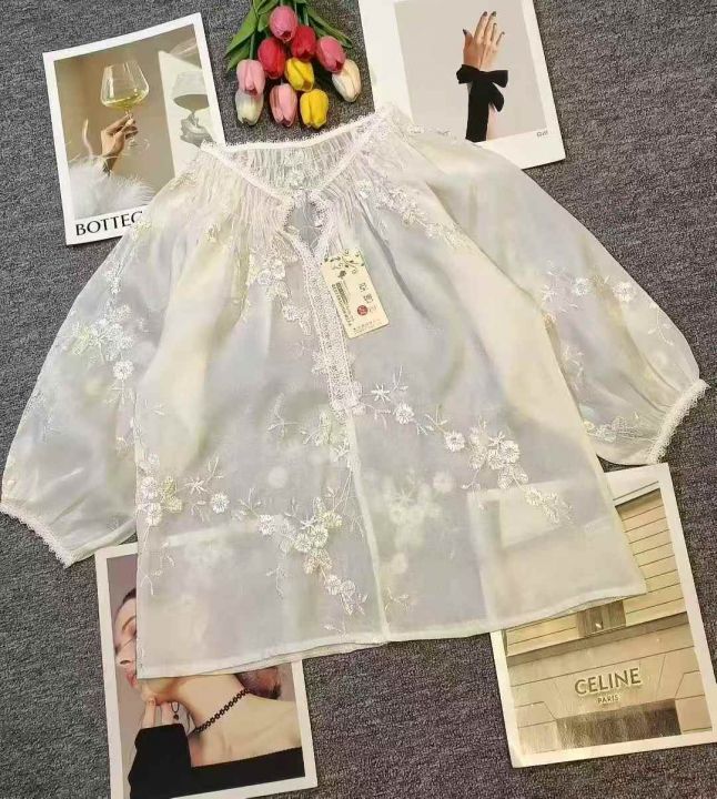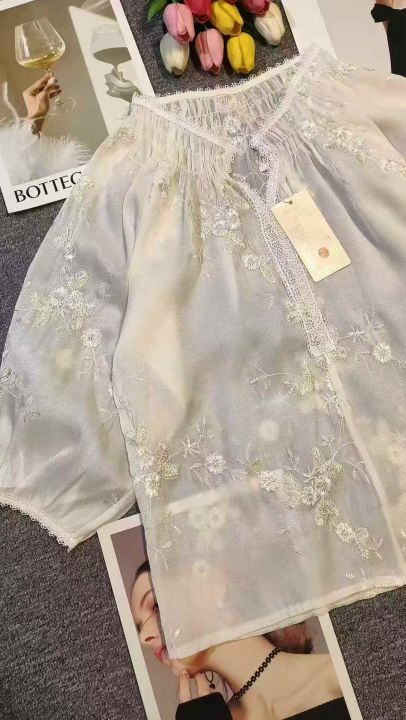 法式甜美小清新绣花拼接灯笼袖上衣,模特图仅供参考,[爱心]40件左右,码数S-L,S多宽松版,穿80-130斤,万佳档口货,原包装️无瑕疵,[666]实体店品质