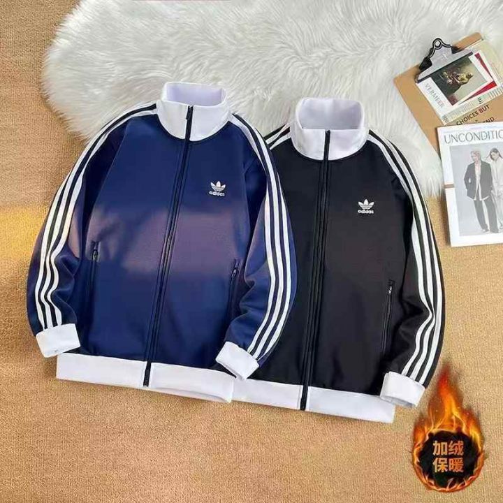 冬季Adidas三叶草复合银狐绒绣标 logo 明星同款开衫外套 S-2XL 黑色,杏...