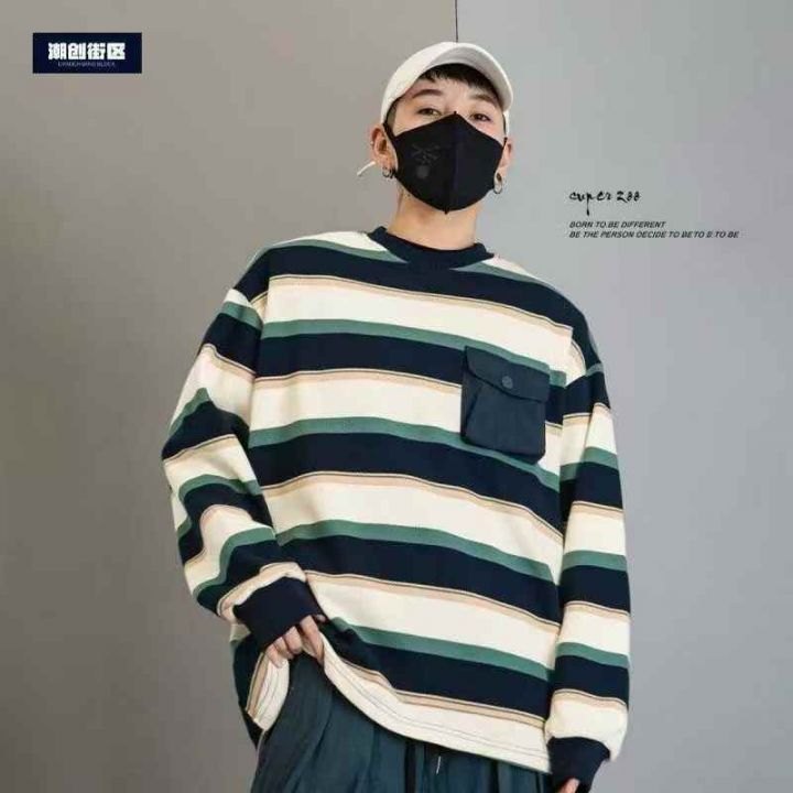 195件,美式潮牌重磅小口袋条纹圆领卫衣日常休闲外套...