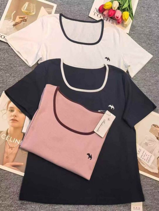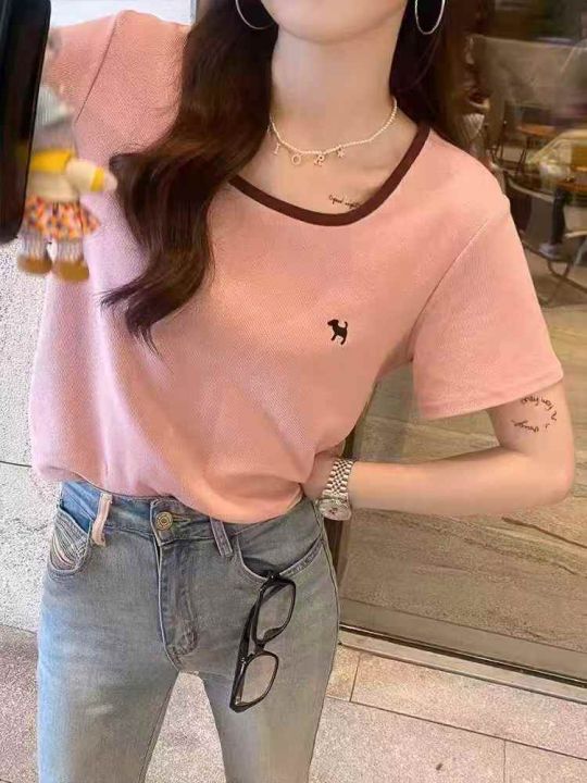 品牌纯棉撞色刺绣圆领修身显瘦短袖,[爱心]300件左右,粉色为主其它颜色几件,尺码S-XL,穿80-120斤,原包装瑕疵,分货加一