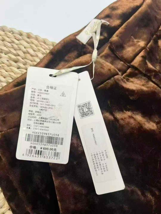 高端金丝绒阔腿花边裤,蔚雯品牌女裤,面料做工都极好,专卖店吊牌价699元,数量200条左右,码数36-40码,咖啡色,独立包装吊牌,模特图供参考,注:实物是咖啡色,没有黑色