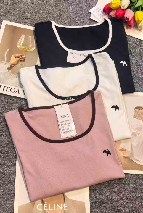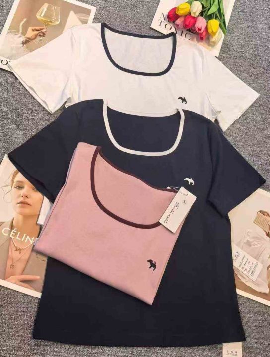 腾仓库捡漏:5.8一件品牌纯棉撞色刺绣圆领修身显瘦短...