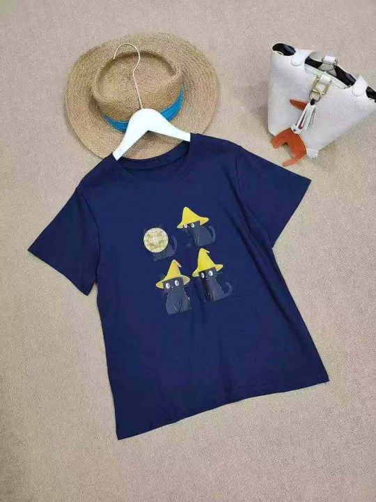 [月亮]:25新款猫咪帽子工艺纯棉拉架棉T恤