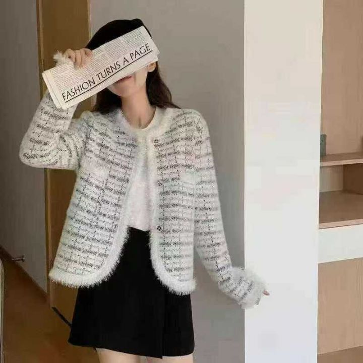 春秋季新款宽松洋气小香风针织毛衣开衫仿水貂外套,小整款,独立包装,均码...