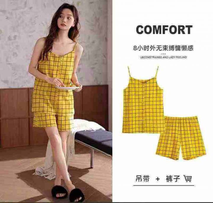 女装格子套装吊带短裤两件套家居服套装,整款五色,品质好,独立包装,数量...