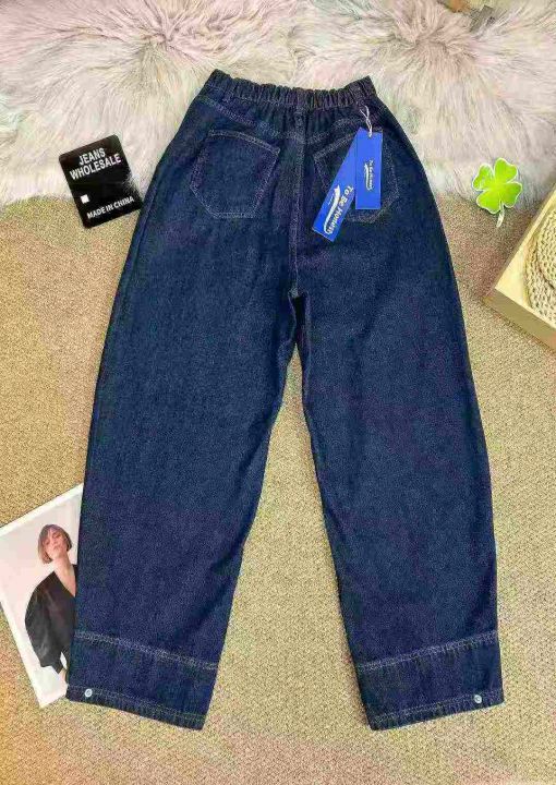 #Jeans wholesale 弯刀牛仔裤女士秋冬半松紧高腰长阔...