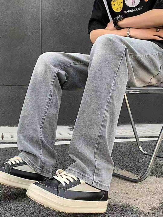 高品质男装牛仔裤水洗美式直筒裤宽松复古休闲长裤,YK...