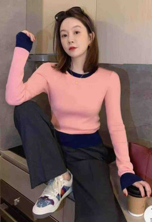 秋冬新款复古撞色港味圆领针织套头毛衣,独立包装,均...