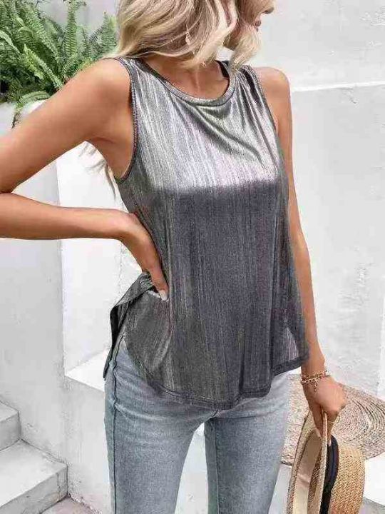 欧美女装裙褶皱纯色吊带/亮面女士T恤 上衣,数量 215 ...