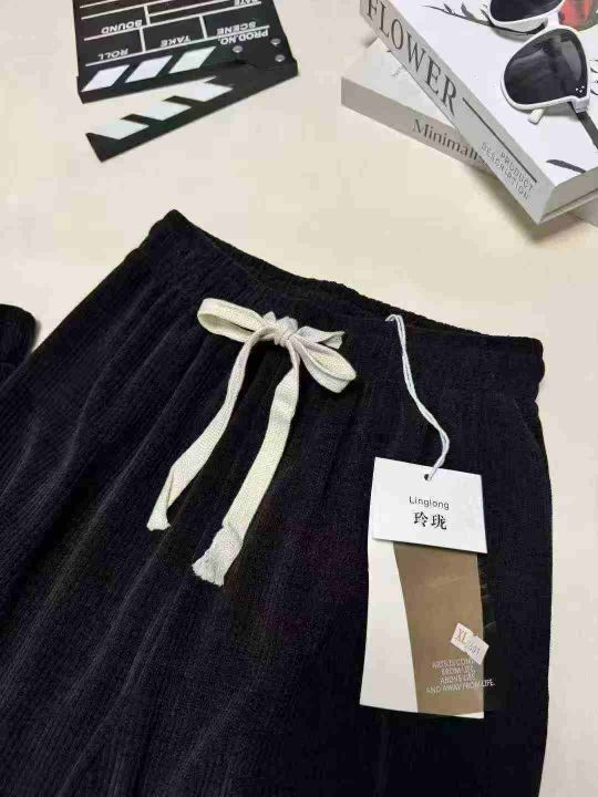 品牌高端女裤系列~黑色灯芯绒裤,腰部抽绳款,数量180条左右,春秋款,码数M-XL,独立包装吊牌。 货号:24862