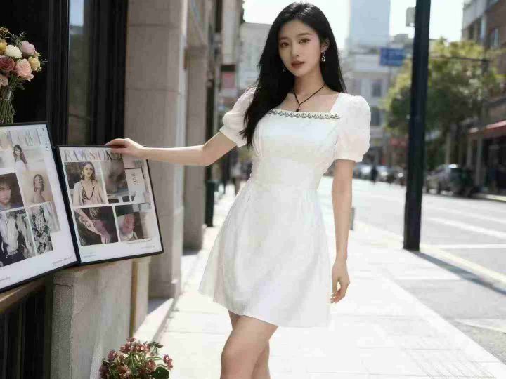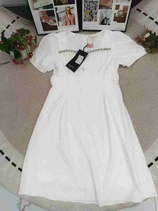 全清19.5法式菱格镶钻方领高腰修身高级时尚连衣裙 数...