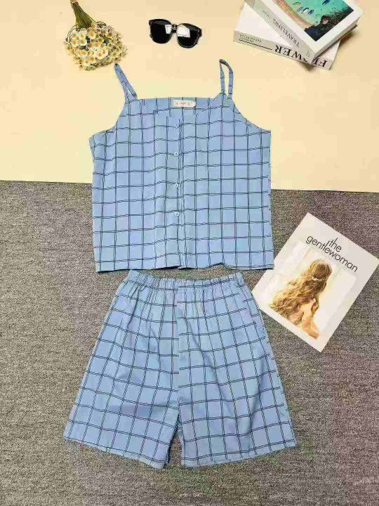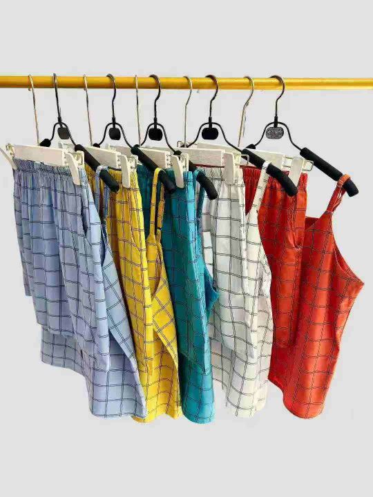 女装格子套装吊带短裤两件套家居服套装,整款五色,品质好,独立包装,数量950套左右,码数M-2XL,全清7.5,分货+1