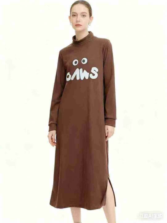 韩版学院风字母卫衣裙宽松休闲甜美长裙温柔长袖加绒连...