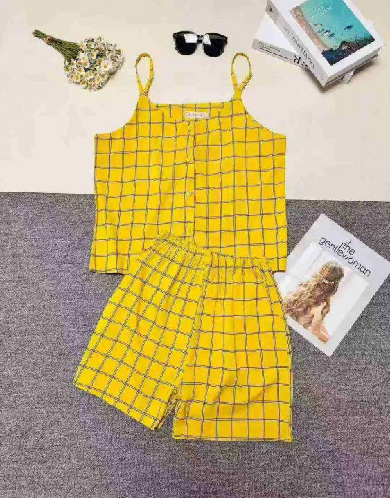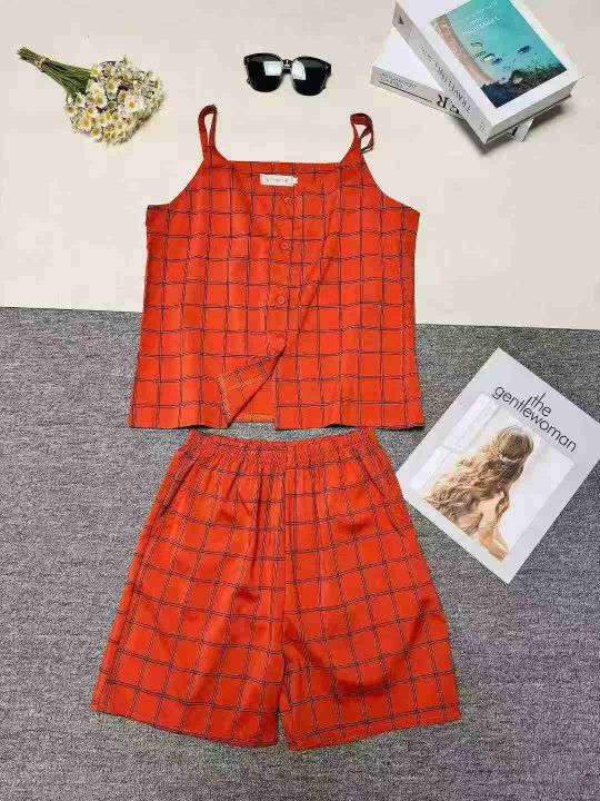 女装格子套装吊带短裤两件套家居服套装,整款五色,品质好,独立包装,数量950套左右,码数M-2XL,全清7.5,分货+1