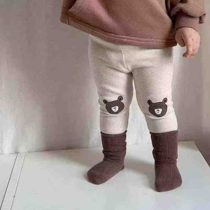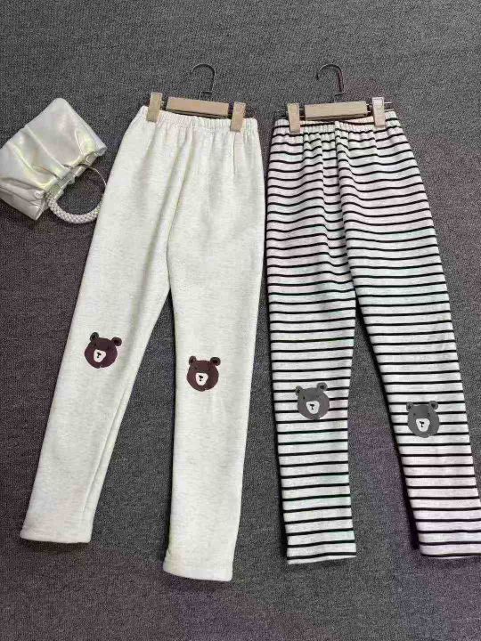 韩版儿童卡通条纹加绒加厚打底裤女童保暖修身棉长裤,独立包装,整款,120件,码数90-150