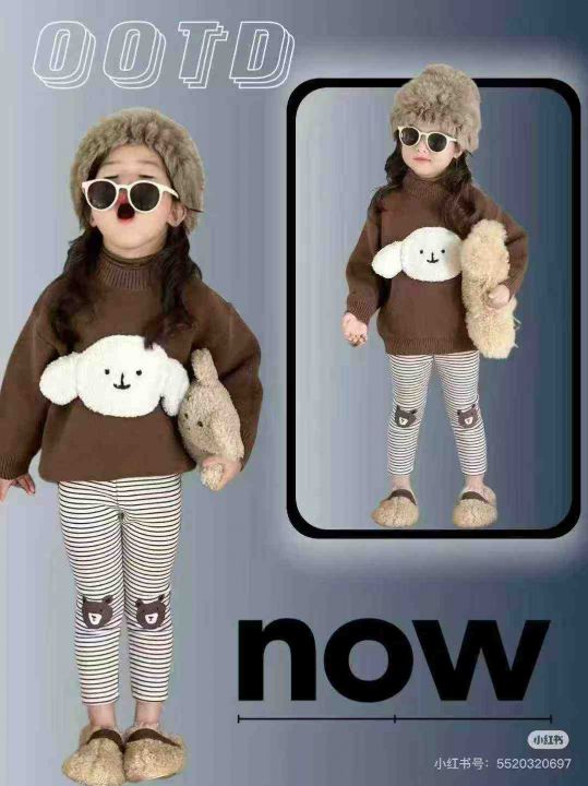 全清4.8分货+0.5韩版儿童卡通条纹加绒加厚打底裤女童...