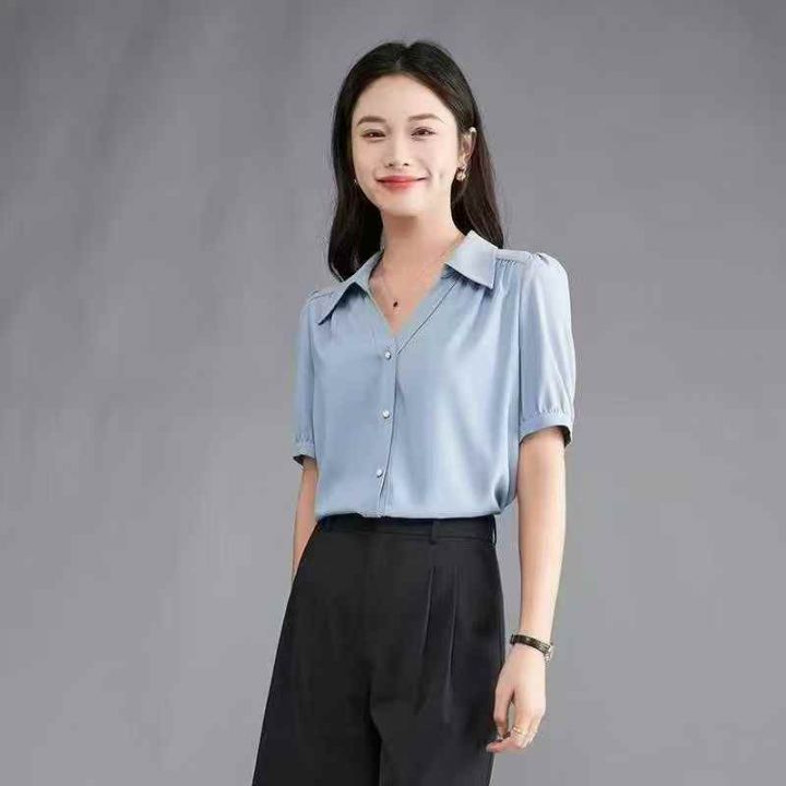 简约通勤V领设计感宽松休闲衬衣,[爱心]40件左右,单款四个色,蓝色为主,款号#008,码数M-3XL,穿80-150斤,[666]工厂原包装瑕疵