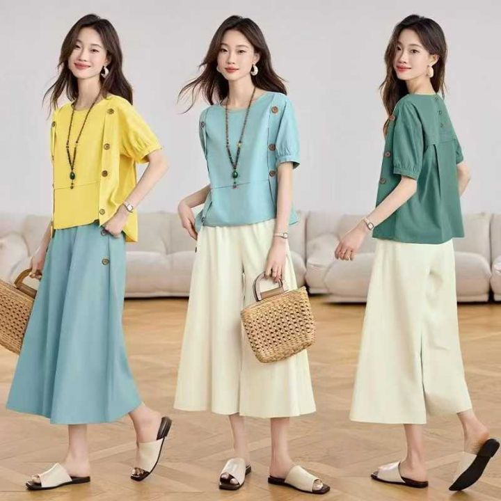 时尚ins减龄气质遮肉显瘦垂感休闲套装,50套左右,兰杏色为主,码数M-4XL,可穿80-150斤,工厂原包原吊无瑕疵,实体店直播摆地摊