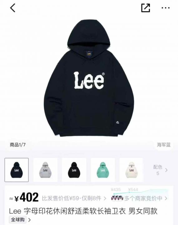 20来件 Lee Logo连帽长袖卫衣 男女同款 黑色 海军蓝...
