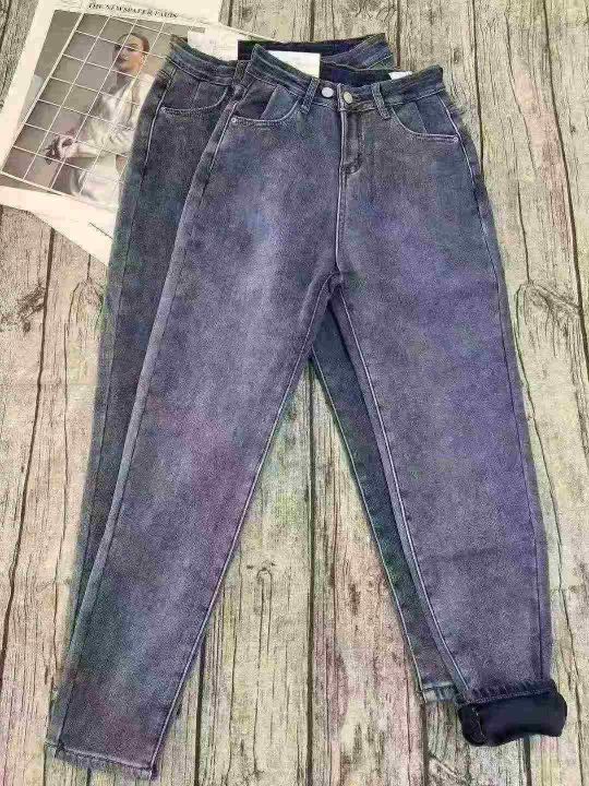 高弹力加绒牛仔裤☕️150条全清15.8元,25 26码数,高腰加绒加厚牛仔裤女宽松秋冬新款大码弹力老爹萝卜裤子女潮