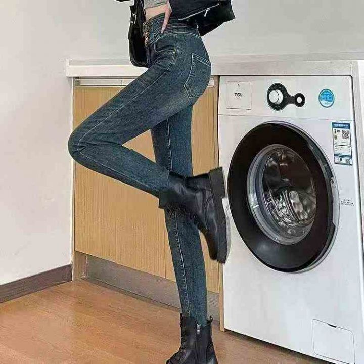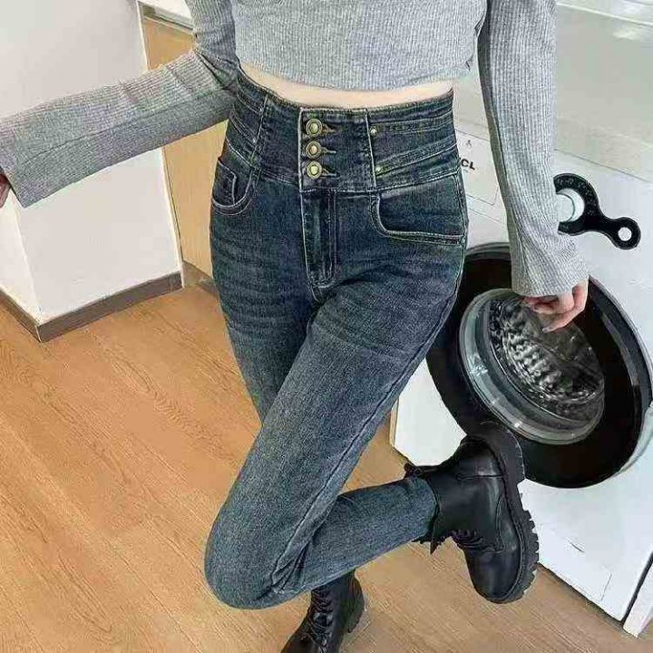 高弹力加绒牛仔裤小脚裤子显高铅笔裤子,独立包装带吊...