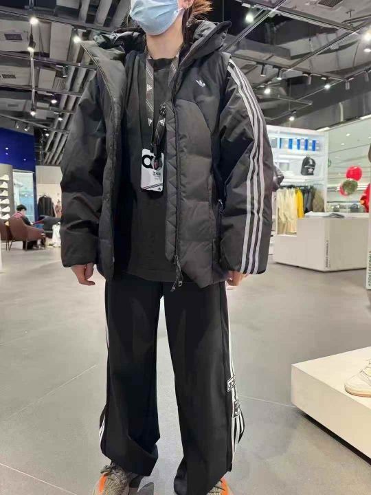 HAMCUS × Adidas联名胶囊系列 一件羽绒服四种穿法条纹拼色宽松连帽可拆卸...