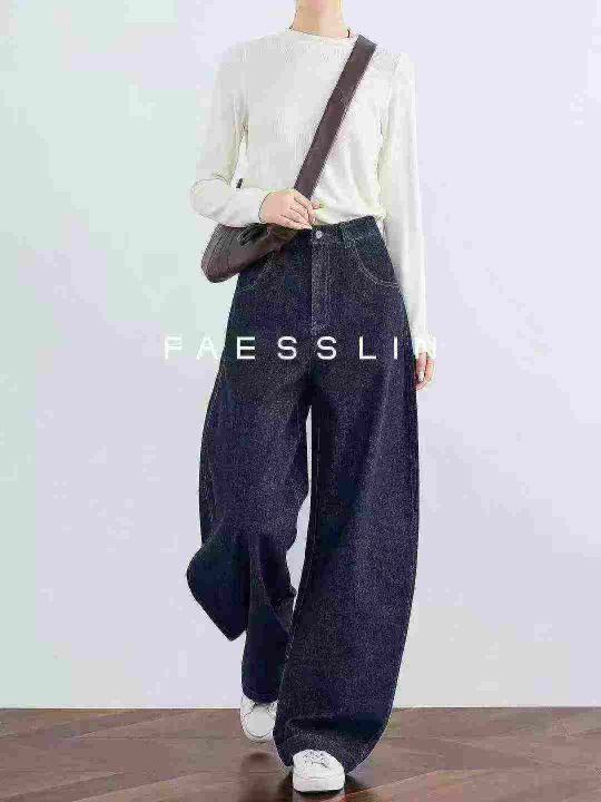 #Jeans wholesale 弯刀牛仔裤女士秋冬半松紧高腰长阔...