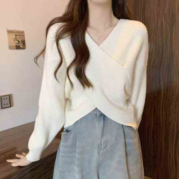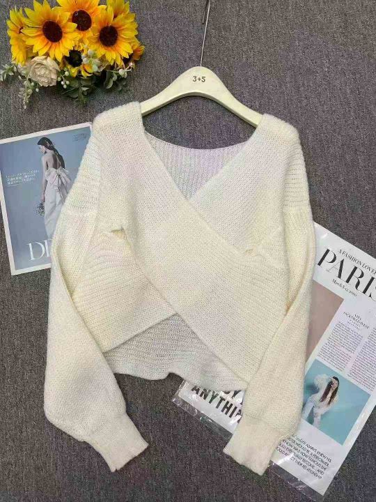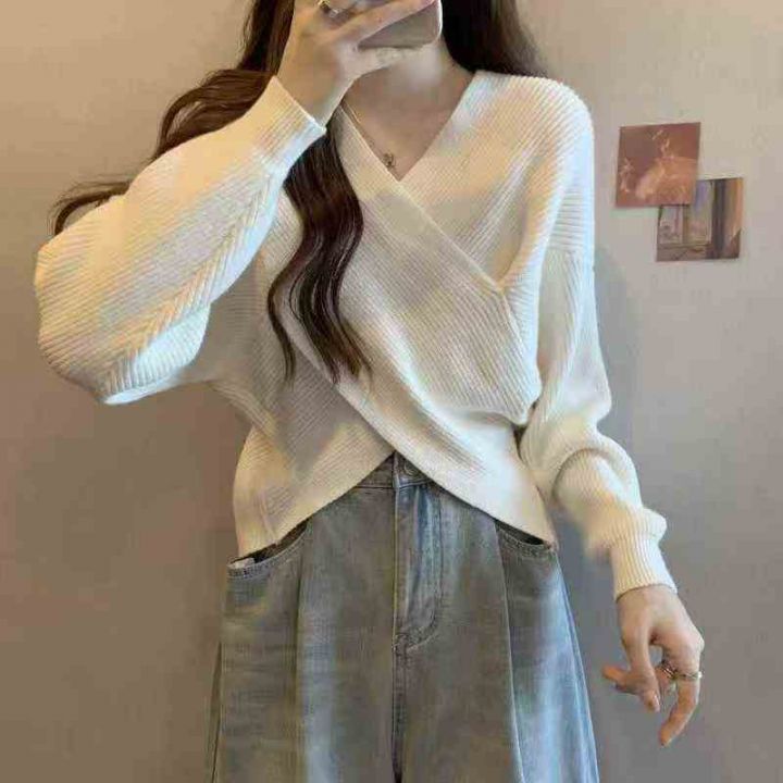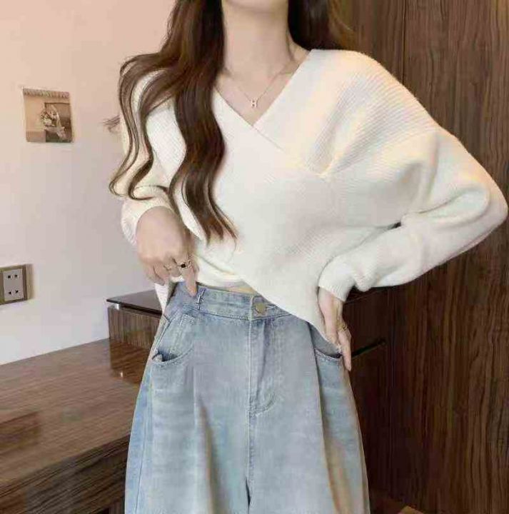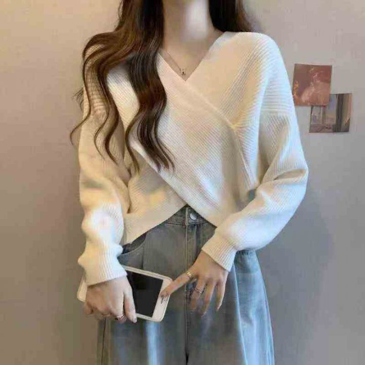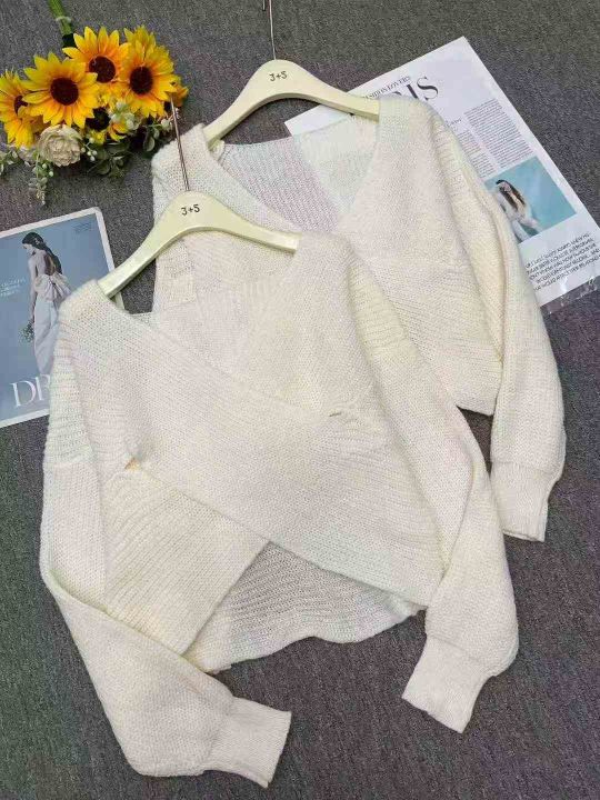 秋冬新款宽松慵懒风交叉设计款粗针针织套头毛衣,独立...