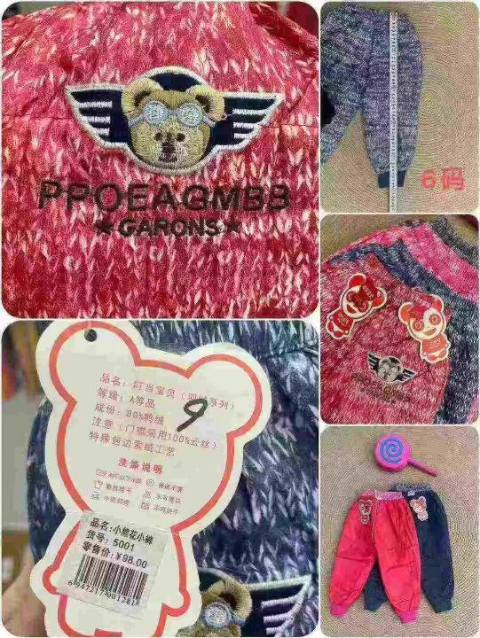 1536件高品质叮当宝贝小熊刺绣儿童羽绒花小裤。面料轻柔,保暖舒适。品质非常好。6/8/10/12,6码相当于80码,裤长50CM左右。一扎4个码,全部原独立包装带吊牌。全清4.8分货加1