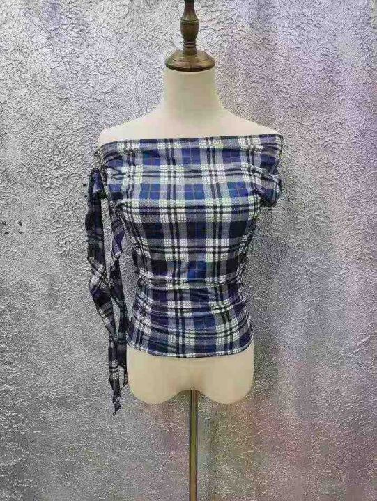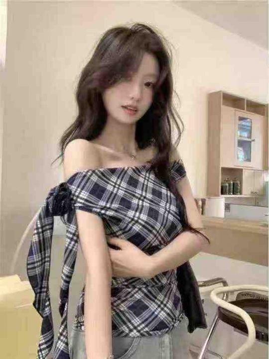 [月亮]:新款荡领背心/一字肩两穿辣妹上衣
