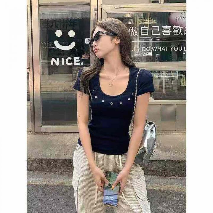 辣妹棉质U领短袖307件6.5,面料柔软高弹力,镂空设计...