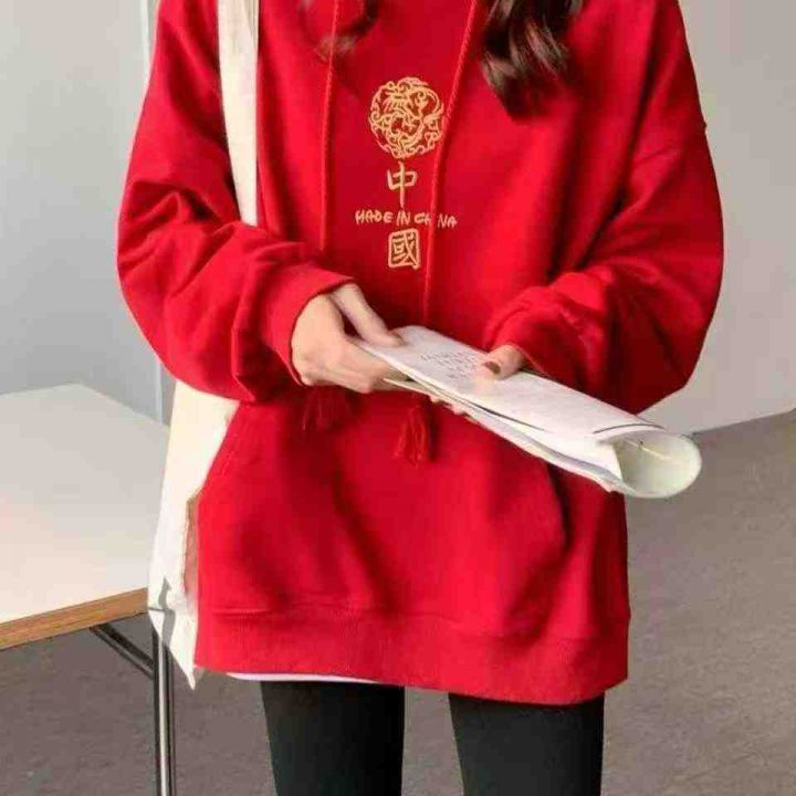 红色双层连帽卫衣宽松秋冬国潮外套中国风卫衣女学院风春秋款,数量220件,码数s-2xl,独立包装,全清5.5元