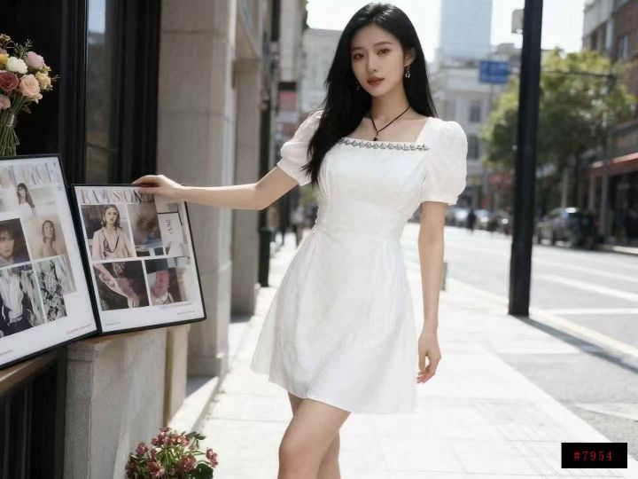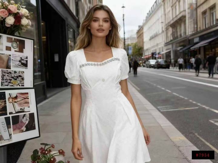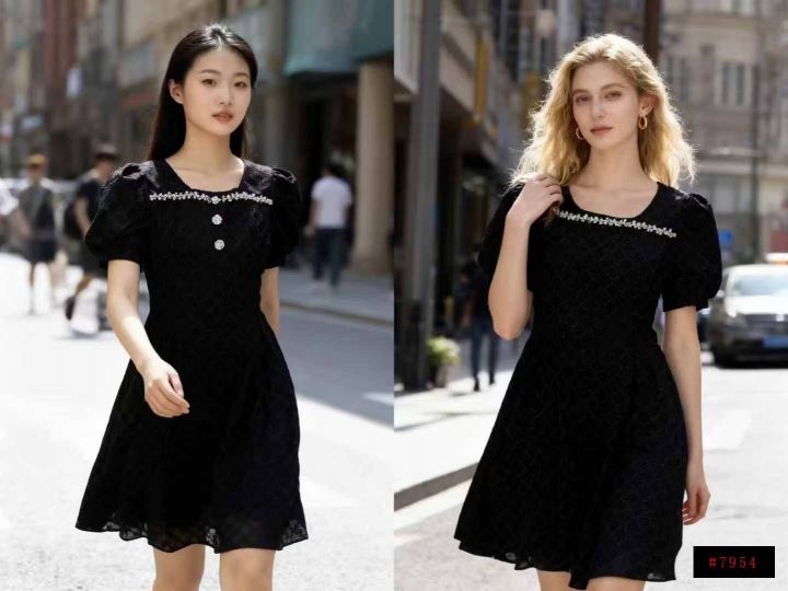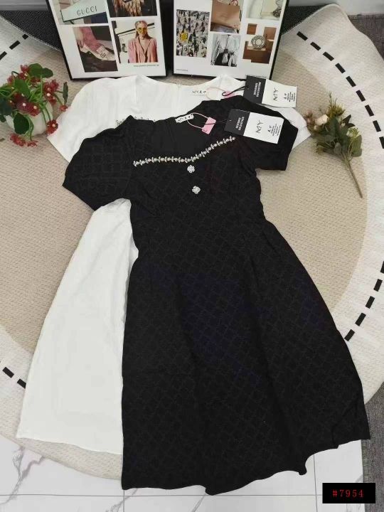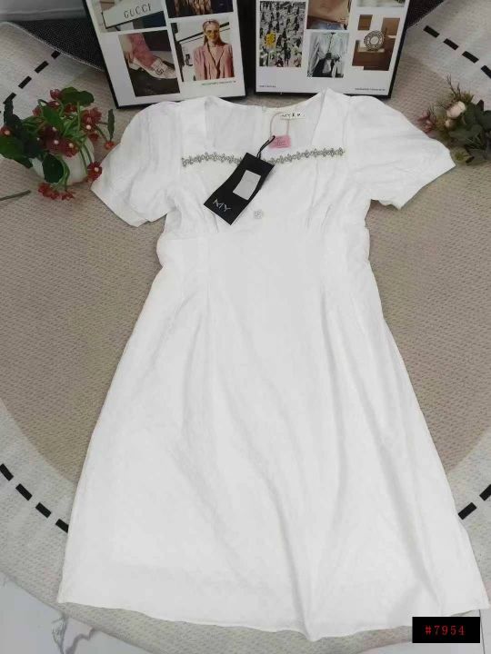 全清19.5法式菱格镶钻方领高腰修身高级时尚连衣裙 数...
