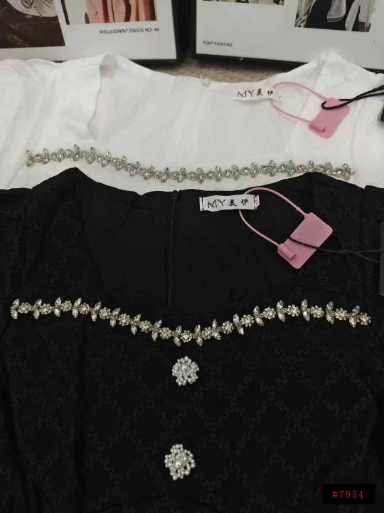 法式菱格镶钻方领高腰修身高级时尚连衣裙 数量112件 码数M--4XL 整款两个色 独立包装带吊牌 货品整洁质佳@_@